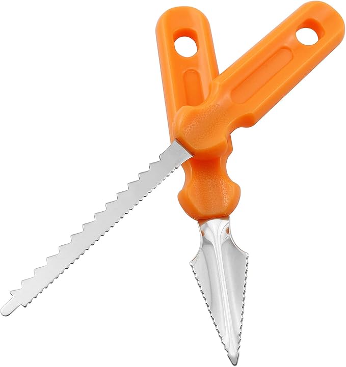 This carving kit features a dual-sided blade—one coarse and one fine serrated edge—ideal for creating detailed and intricate pumpkin designs. Made from rust-proof stainless steel with a comfortable, easy-grip handle, it ensures durability and control. Perfect for families, beginners, and children under supervision, it accelerates and enhances your creative carving tasks.